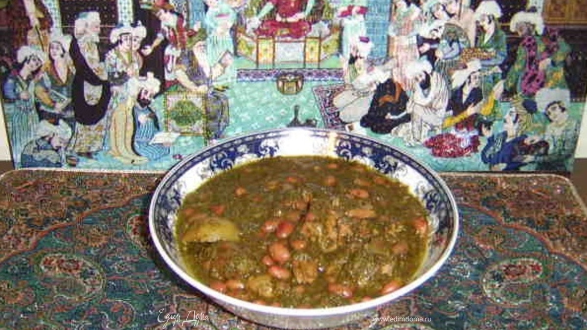 Сегодня хочу познакомить вас с иранским блюдом ГОРМЕ-САБЗИ. Это соус с мясом (баранина или телятина) и большим количеством зелени. Вариантов приготовления этого блюда огромное количество, и каждая хозяйка готовит свое горме-сабзи, как у нам салат оливье или борщ. "Сабзи" по-персидски зелень, "горме" пришло из турецкого языка и означает "резать на куски". Я представляю на ваш суд горме-сабзи, которое готовит моя свекровь, от нее я и научилась. Процесс приготовления этого блюда достаточно длительный и занимает несколько часов. Можно сказать, что это особенность приготовления иранских мясных соусов: длительное время на медленном огне так, чтобы хорошенько все загустело. В состав зелени входит лук порей, петрушка, которые берутся в соотношении 1:1, шамбала (пажитник или как говорят иранцы шамбалиле) 0.5 части, немного шпината, немного свежей свекольной ботвы (если сезон). Моя свекровь покупает много зелени на рынке, затем сортирует, моет, режет мелко ножом, "припускает" на сливочном или растительном масле на сковородке, охлаждает, расфасовывает по пакетам и кладет в морозильную камеру. На 5-6 человек необходимо 500г свежей зелени, поэтому решившись приготовить это блюдо исходите из этого расчета. Также в состав гоме-сабзи входит фасоль (мелкая красная или белая с черным глазком) и сушеные лимоны (вы можете заменить их лимонным соком). Подают горме-сабзи с рассыпчатым рисом и разрезанным на 4 части луком.