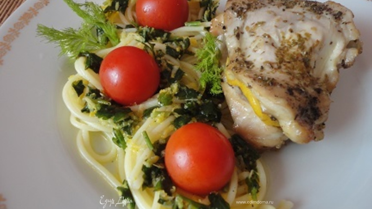 Оставшиеся 1,5 лимона нарезать тонкими кружочками. Каждую ножку цыпленка разрезать вдоль и развернуть (как книжку). Посолить, поперчить и посыпать смесью сухих трав орегано и майорана, взбрызнуть оливковым маслом. Положить по одному-два кружочка лимона - Шаг 2