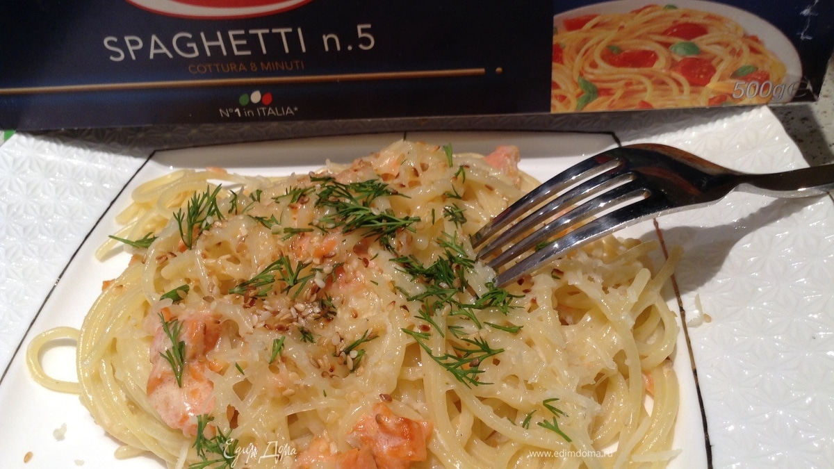 Выкладываем спагетти в тарелки, посыпаем сыром, укропом и кунжутом(кунжут обжарить). И быстро кушаем.... - Шаг 6