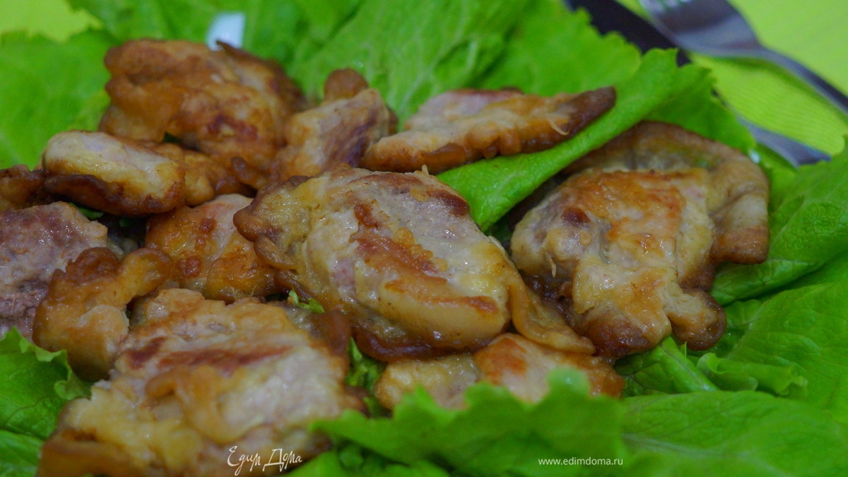 Хорошо промаринованное мясо обжариваем на сковородке, на растительном масле. Потушить 3-5 минут. И мясо готово. Подавать с зеленым салатиком. Можно подать из томатным соусом.