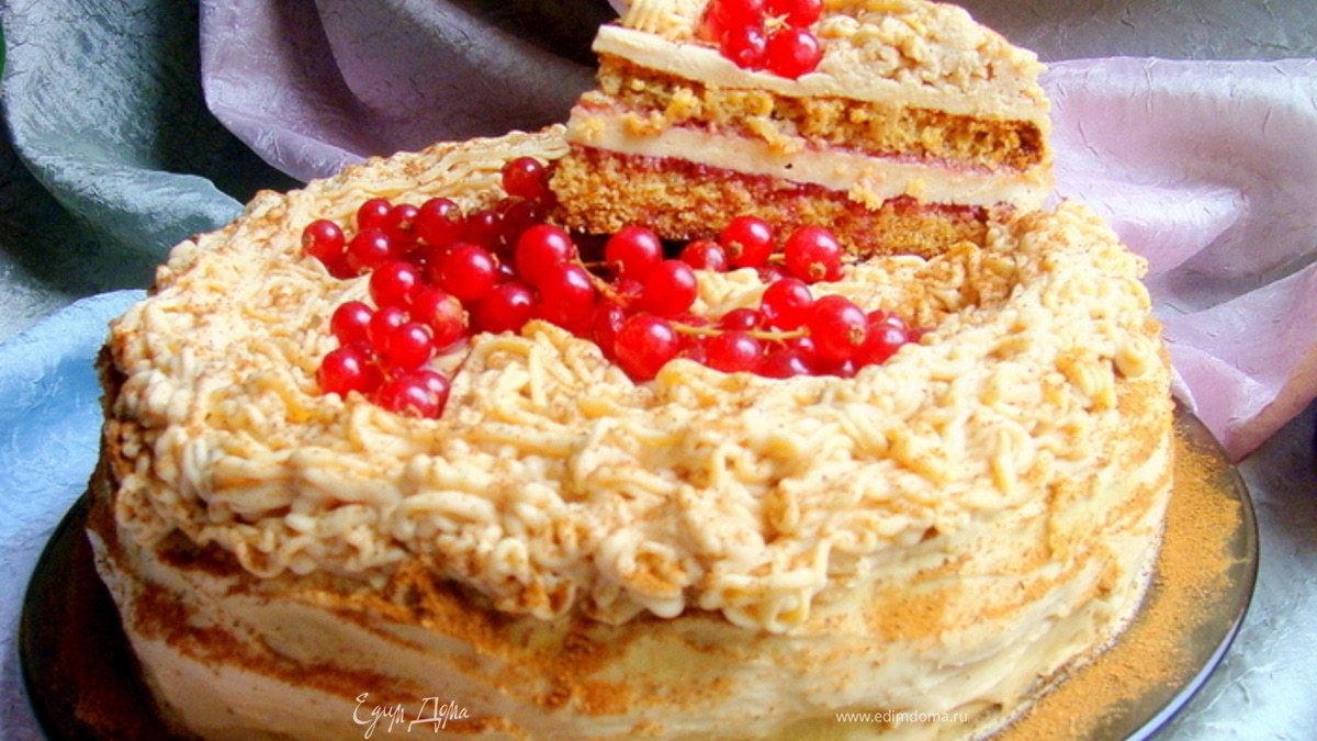 Корж остудить, освободить от формы, разрезать пополам. Получается невероятно ароматный, пряный пористый корж, напоминающий пряник, только гораздо воздушнее!