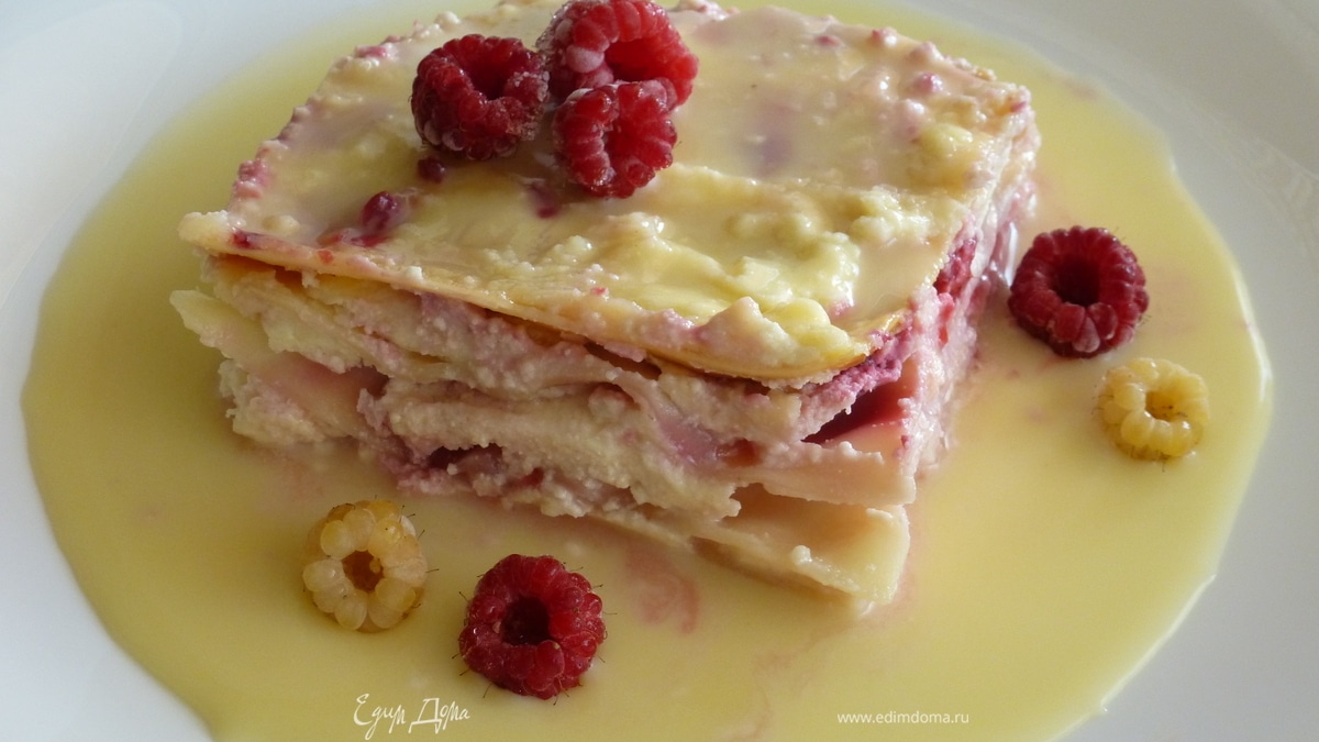 Творожную лазанью делаю часто, с удовольствием ест вся семья. Ягоды использую любые, сегодня вот малина с кислинкой. Соус делала впервые, вкусный, но очень сладкий. В следующий раз уменьшу количество сахара. Соус можно заменить жидкой сметаной, раньше так и делала.