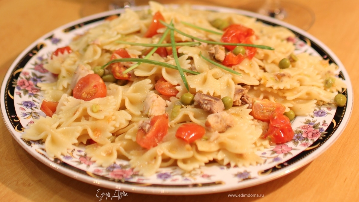 - Шаг 3Готовую пасту сливаем и выкладываем в сковороду, перемешиваем и раскладываем на тарелки. Можно добавить еще любимых специй или посыпать сыром. Украсить пасту любой зелень, которая есть под рукой. Подходит все! Попробуйте обязательно! Очень вкусно! Приятного аппетита!