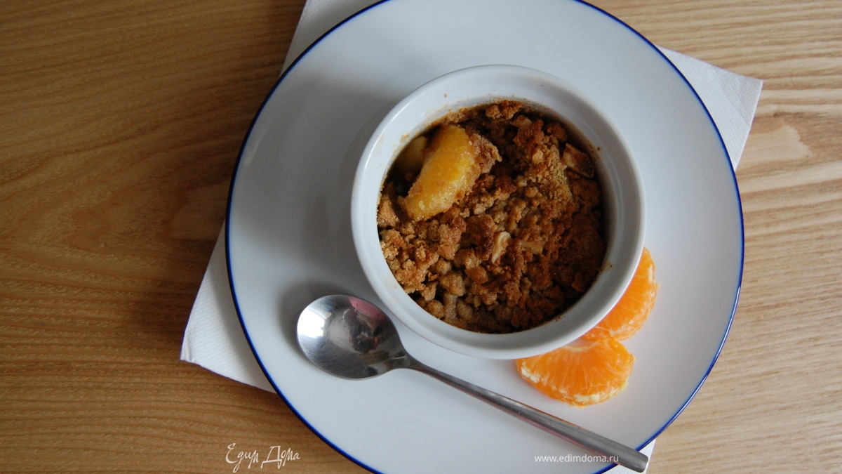 - Шаг 2Выложить яблоки в стеклянную или иную имеющуюся у вас форму для выпекания (я иногда использую маленькие керамические формы для удобства сервировки). Выложить тесто на яблоки, распределив его равномерно по всей поверхности, как бы накрыв яблоки одеялом из теста. Выпекать в духовке, предварительно разогретой до 180 градусов, в течение 20-30 минут. PS Помимо яблок в крамбл можно добавить дольки свежих клементин или мандарин. Но их следует выкладывать свежими непосредственно в форму для выпекания с яблоки без предварительной термической обработки.