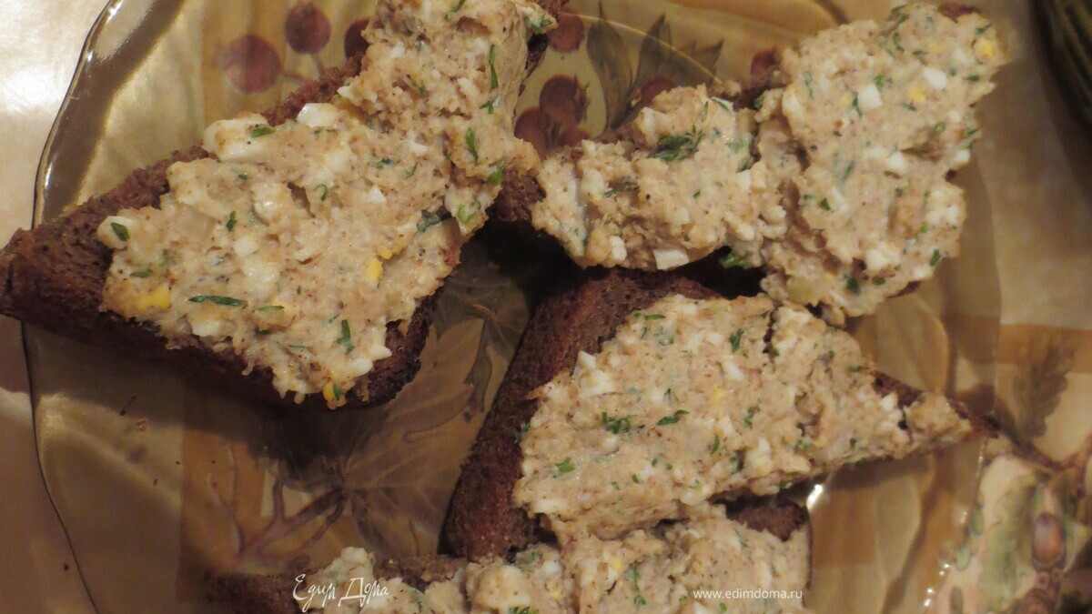 - Шаг 2Черный хлеб подсушить в духовке/тостере/на сковородке. Намазать получившемся паштетом и подавать на стол.