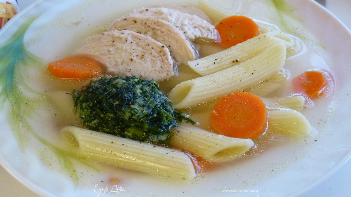 Вместо лапши - пенне, вместо обычного укропа - песто, вот оно, новое видение на старую, привычную, всеми любимую куриную лапшу. Но вкус от этого не страдает, а приобретает новые интересные нотки. Эх, как красочно я описала супчик. Но, поверьте не зря, он того стоит! И это стоит попробовать!![]()