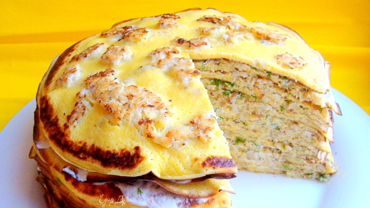 Пряные блины с припеком (рыбный торт)