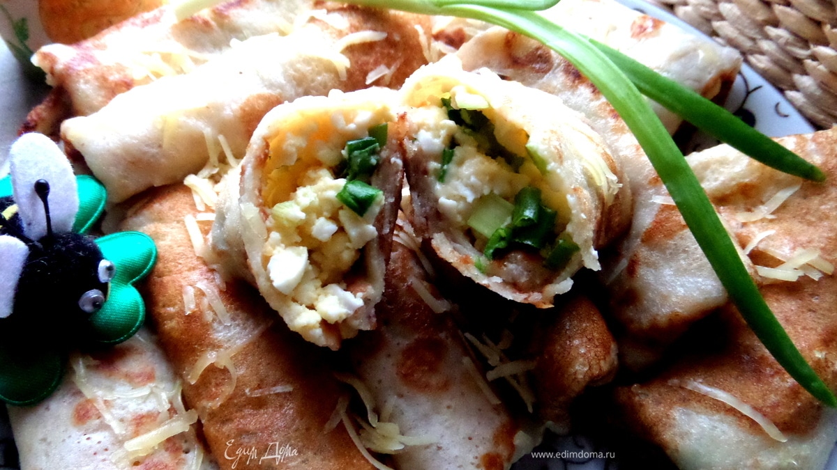 Дрожжевые блины с луково-сырной начинкой