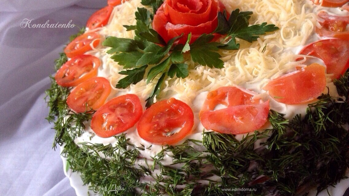 Четвертый блин грибы.В таком порядке собираем весь торт.