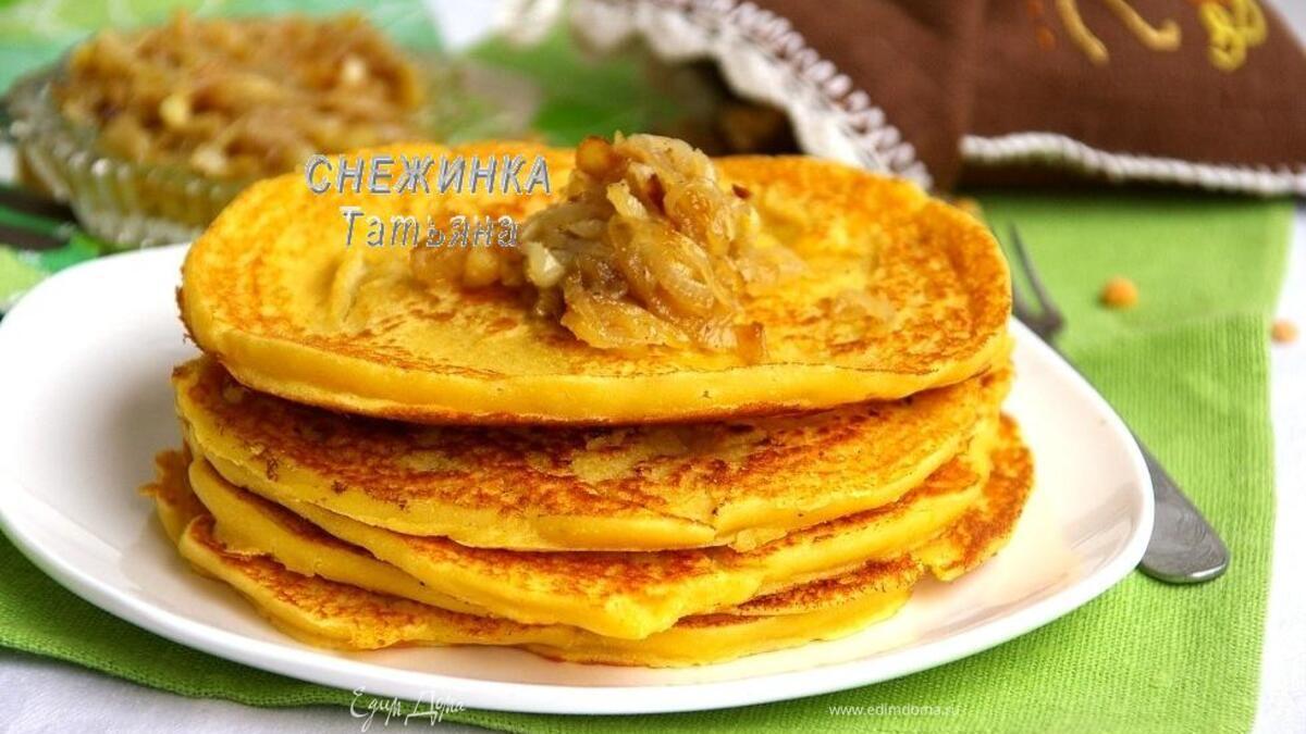 Блины гороховые с луковым конфитюром
