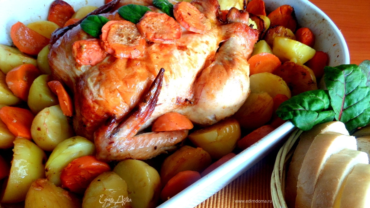 Не буду показывать вид растерзанной курицы...,все и так его знают))) Попробуйте запечь курочку с морковкой и Вы удивитесь,на сколько она вкусная!!!