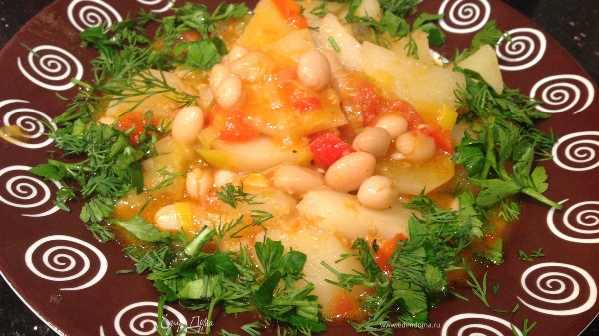 Вчера весь день ездили с мужем по делам, вернулись домой уставшие, замерзшие и очень голодные. Поэтому и возникла идея приготовить такое сытное, согревающее, ну и конечно же постное, овощное рагу.