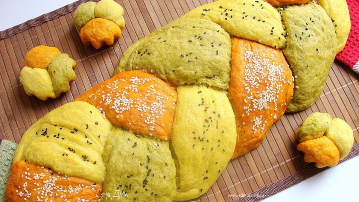 Цветной хлеб без дрожжей "коса-краса" с натуральными добавками