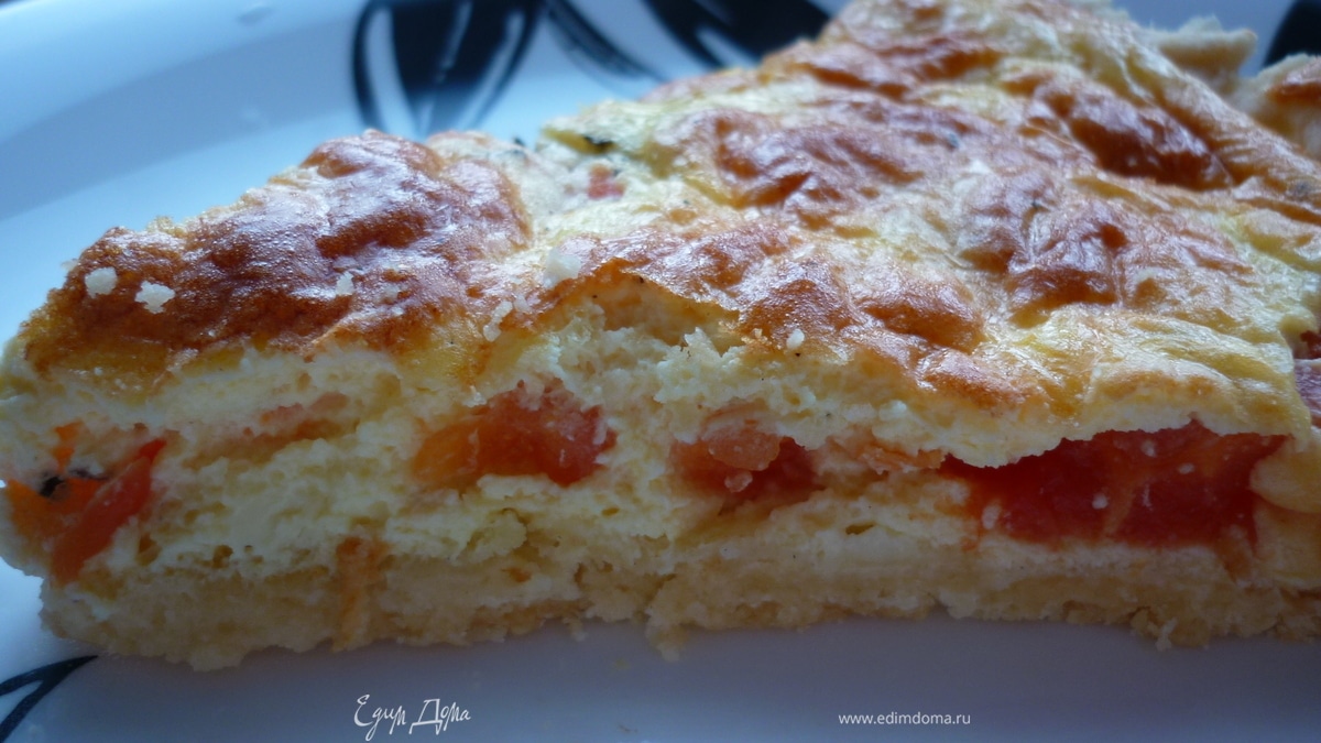- Шаг 1Заранее выложите тесто в круглую форму, смазанную сливочным маслом(тесто я всегда готовлю сама: 130г сливочного масла, 250г муки, щепотка соли, немного воды). Дно и бортики наколите вилкой. Поставьте на 1-2 в холодильник. Помидоры ошпарьте кипятком, снимите с них кожицу, нарежьте кружочками, посолите и оставьте на час. Разогрейте духовку до 180°С Поставьте тесто в духовку и выпекайте минут 10-15. Отделите желтки от белков. Желтки смешайте с творогом(желательно протереть его через сито раза два), посолите, поперчите, добавьте тёртый мускатный орех. Затем добавьте тёртый сыр, хорошо перемешайте. Белки хорошо взбейте (как для суфле) и аккуратно перемешайте с творожной смесью. Получился творожный мусс. Выньте тесто из духовки. Выложите на тесто половину творожного мусса. Сверху выложите помидоры, посыпьте их мелко нарезвнным базиликом, сверху накройте оставшимся муссом. Поставьте пирог в духовку, выпекайте примерно 35-40 минут, верх пирога должен очень хорошо зарумяниться. Перед подачей дать немного остыть, подавать тёплым.