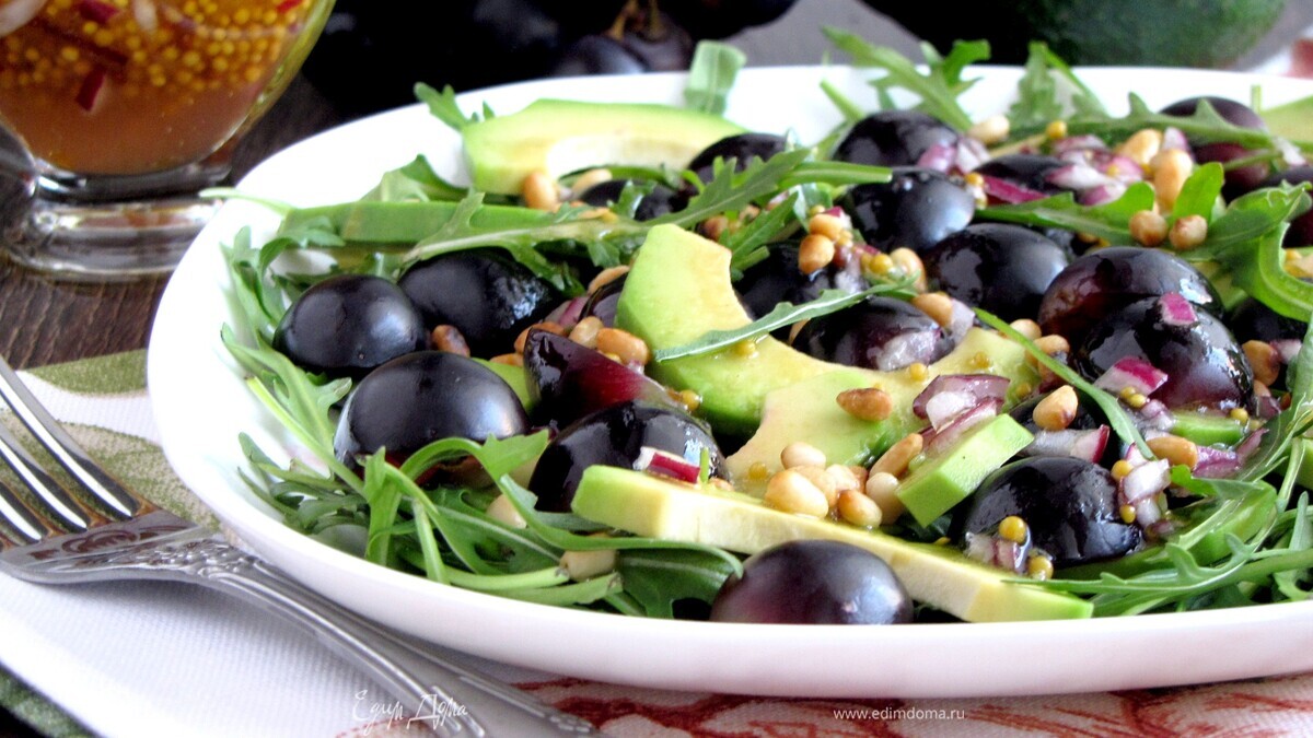 Салат с авокадо и черным виноградом