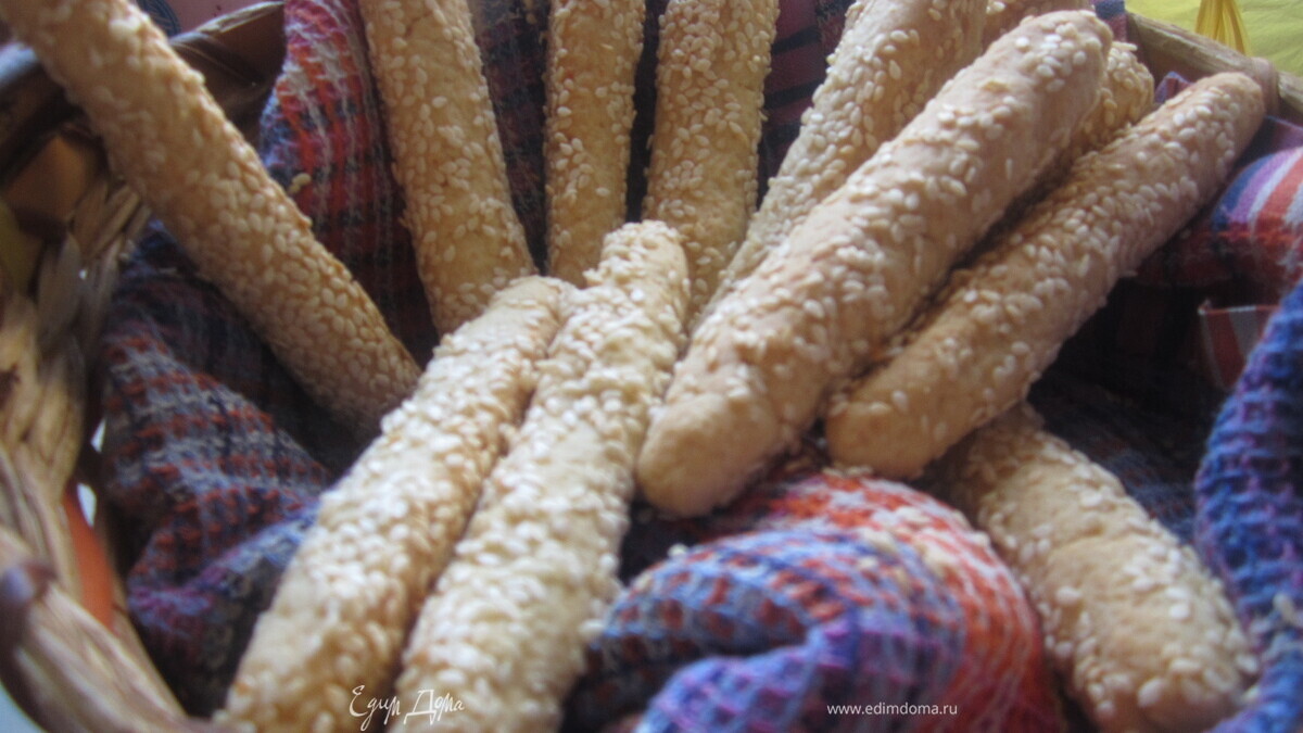 Самый приятный момент. Обвалять палочки в семенах кунжута (можно также попробовать рубленные тыквенные семечки или семя подсолнечника- экспериментируйте!) Выложить эту красоту на противень, посыпанный мукой и выпекать 15 минут при 180 С.
