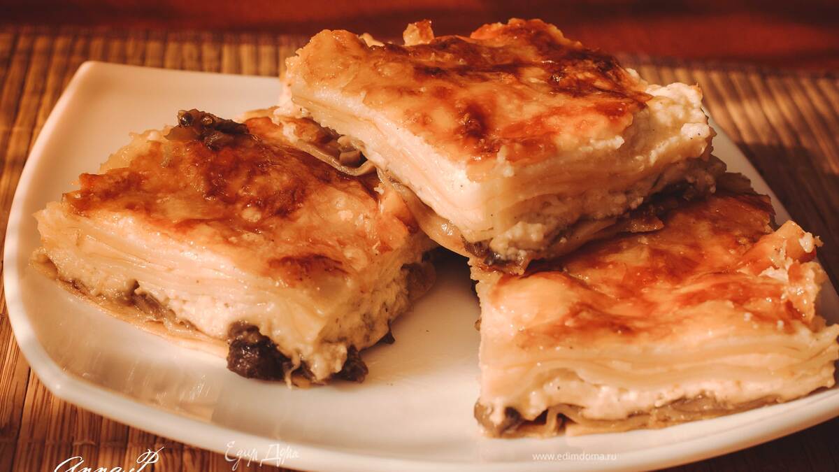 Лазанья сырная с грибами