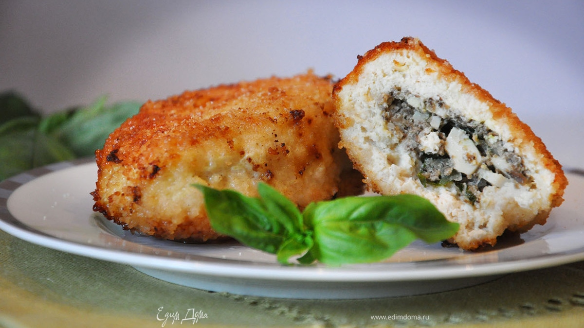 Из фарша слепить шарик, расплющить его на ладони. Положить в центр начинку и залепить,как пирожок. Обвалять в сухарях. - Шаг 4
