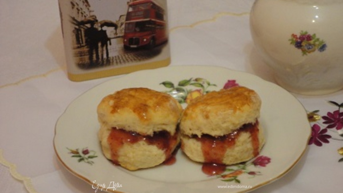 Это рецепт от Nigella Lawson. Его особенностью является использование кефира вместо молока. Основное значение buttermilk - пахта, но также переводится, как кефир обезжиренный и даже ряженка. Я готовила на обезжиренном кефире и сконы получились очень нежные, а с земляничным вареньем ммм...