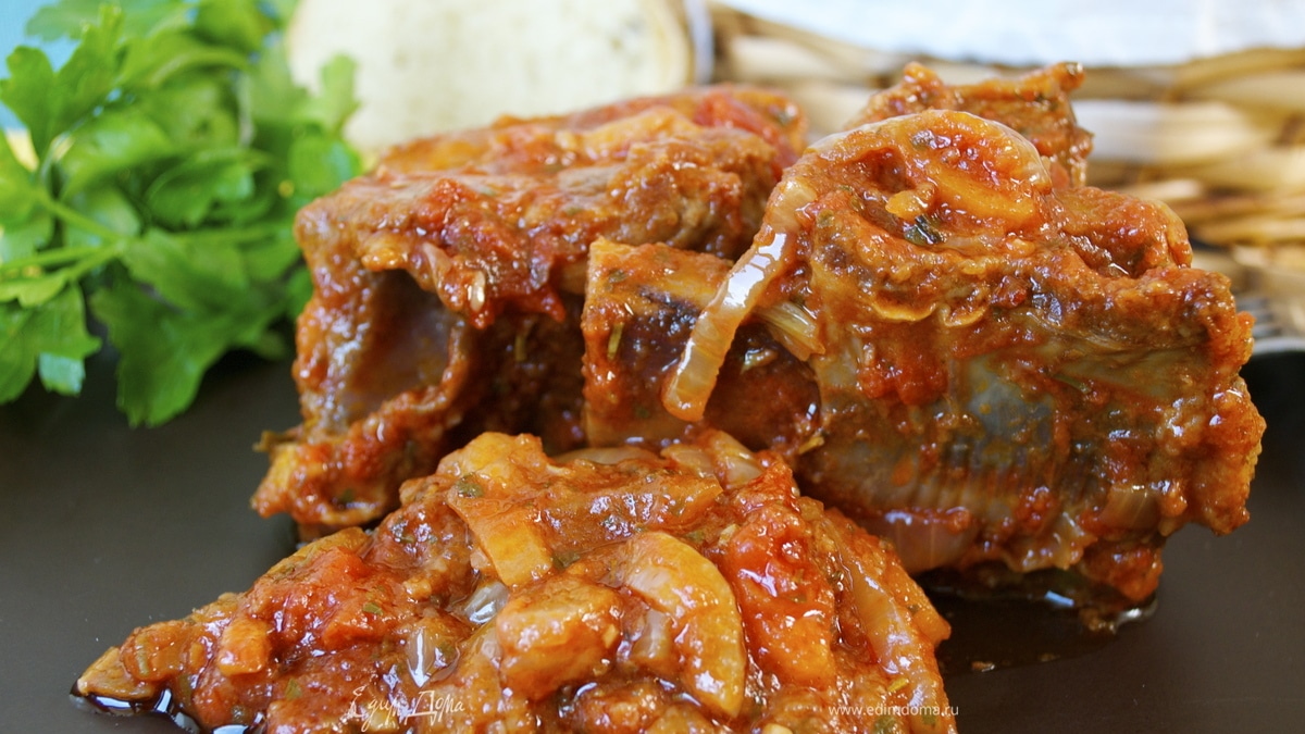 Томленые говяжьи ребрышки с томатно-овощным соусом