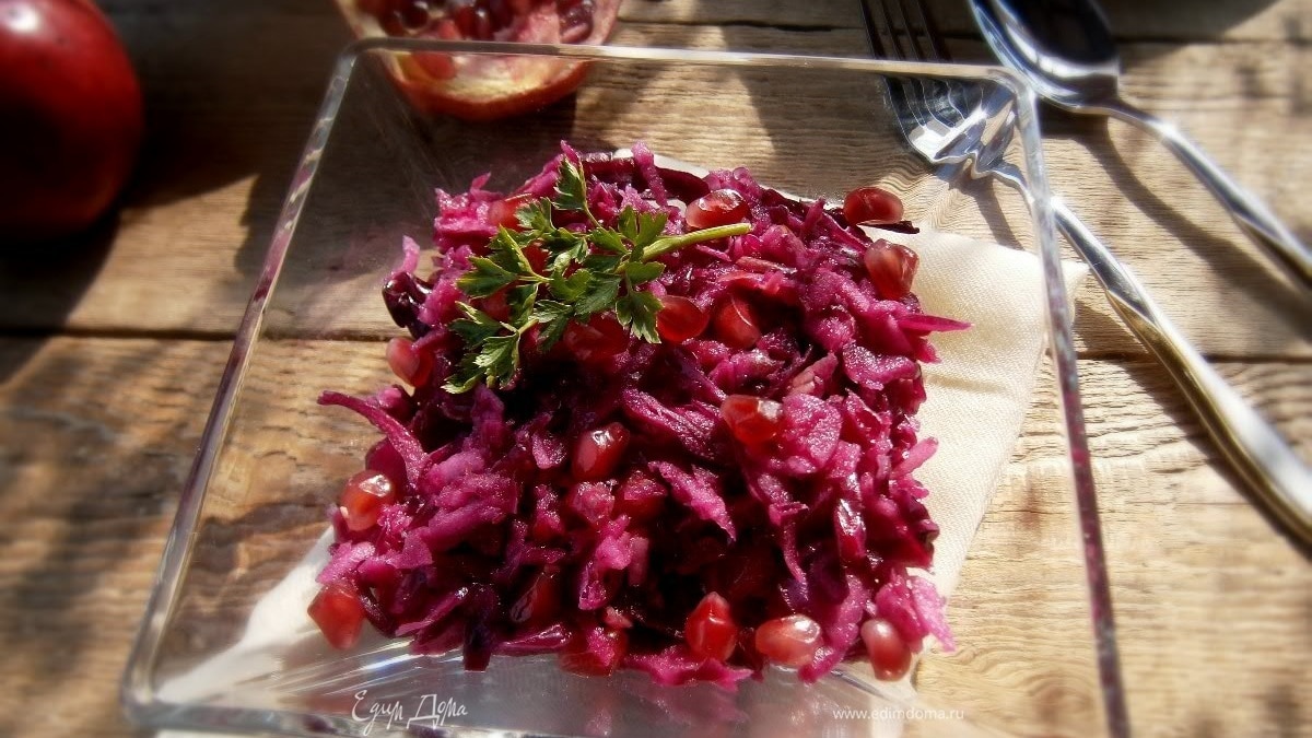 Салат из маринованной красной капусты с яблоком и гранатом