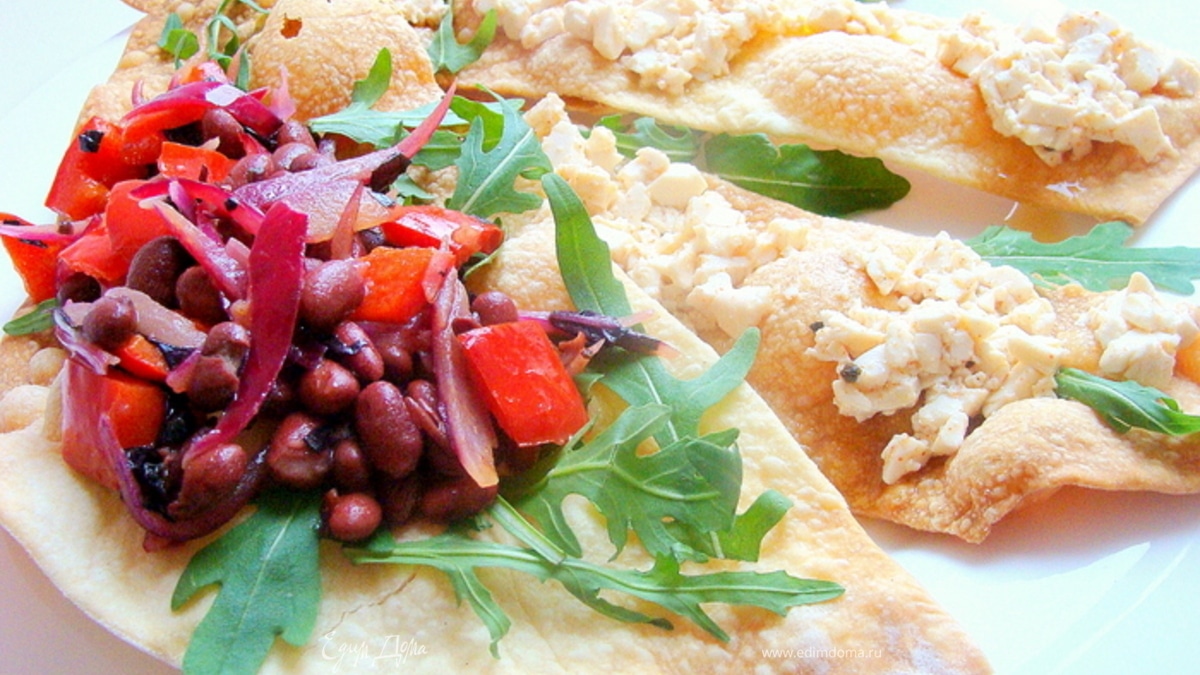 Фасолевый салат с маринованным луком и пряной заправкой из тофу