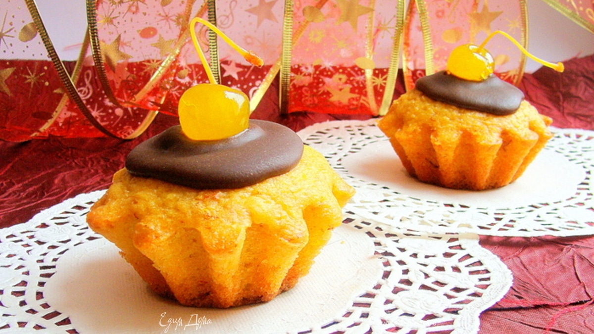 Мандариново-шафрановые кексы с шоколадной глазурью (постные)