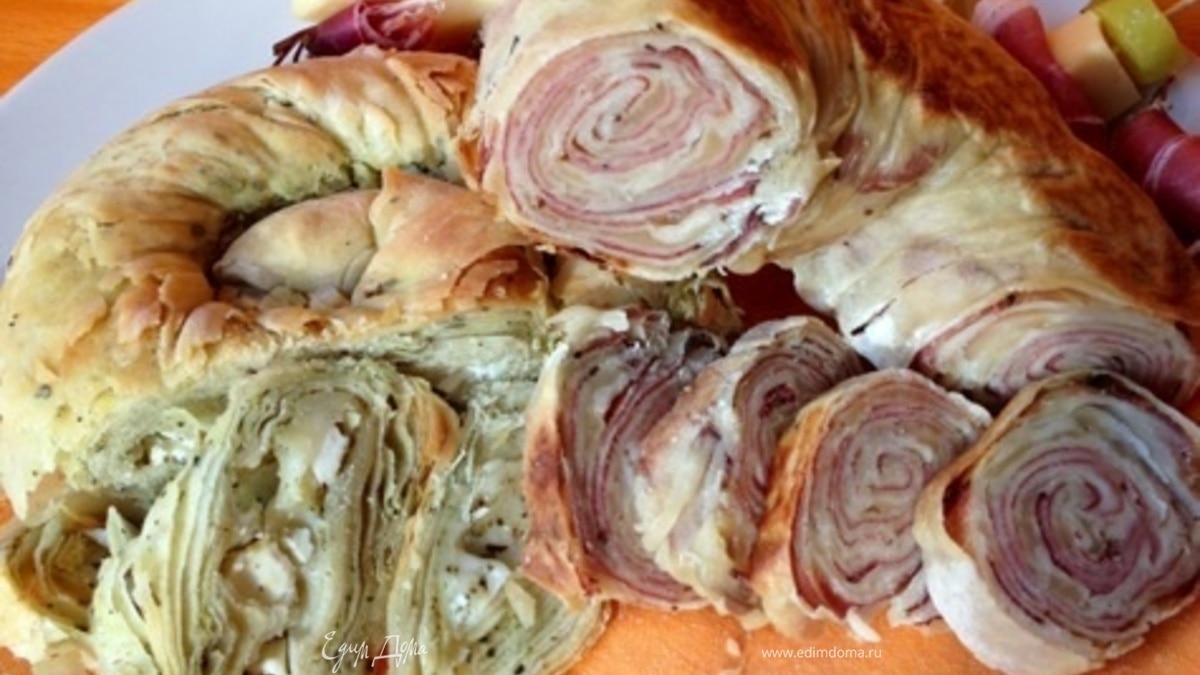 Слоеные пироги-рулеты с несладкими начинками