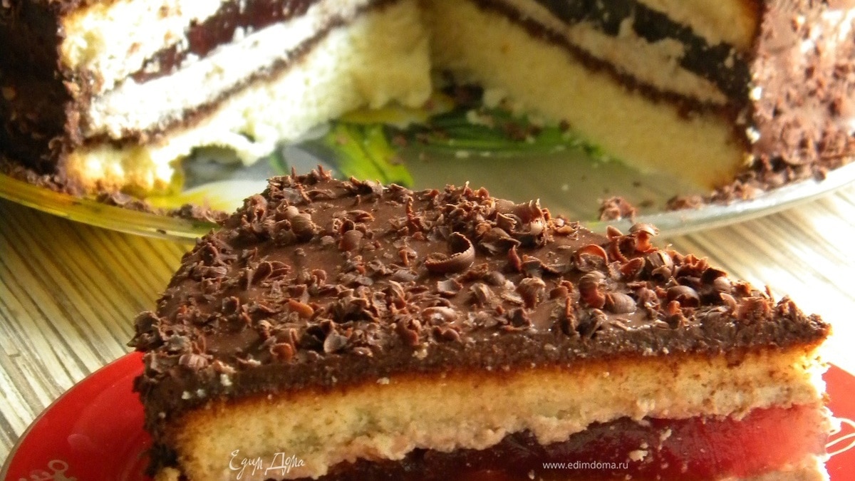 Бисквитный торт с апельсиново-вишневым желе