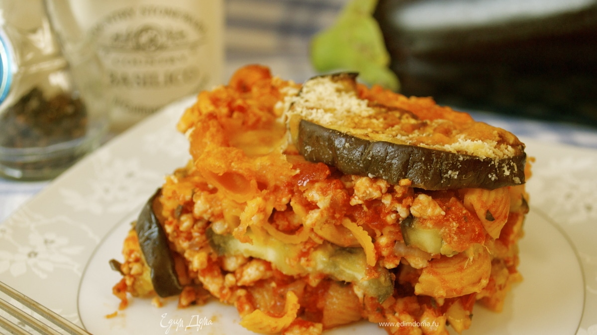 В рецепте-оригинале рубленая индейка, паста и баклажаны прекрасно сочетаются с двумя сортами сыра - пармезаном и моцареллой!