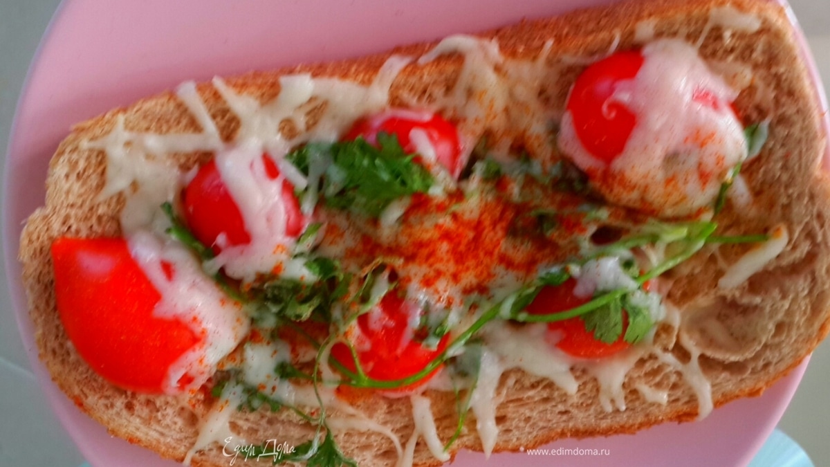Легкий весенний бутерброд. Хлеб ваш любимый,сыр плавленный и специи..... мммм.... в духовке запечь...корочка хрустит, а в серединке мягкий хлебушек. Муж позвонил пару дней назад и скачал что через 10 мин заедет перекусить домой.... и я в торопях придумала этот бутерброд. И так муж поел суп и мое произведение