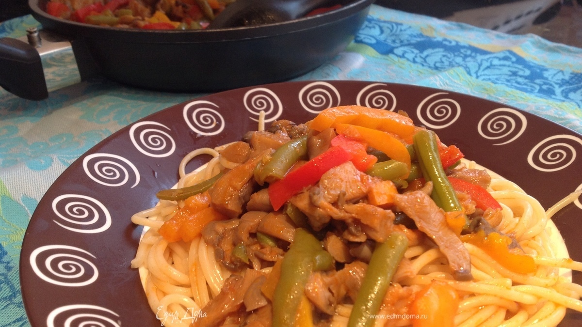 Очень красивая паста! 😍 С разноцветным перчиком и с фасолькой! 🍄🌺🍃