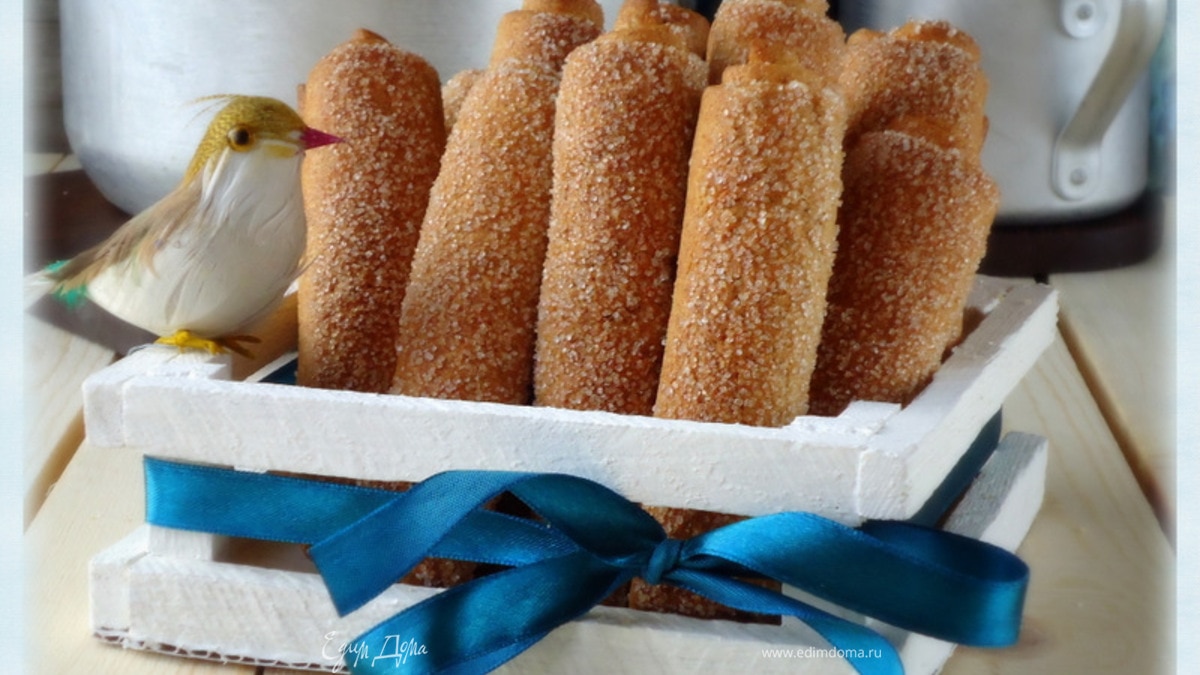 Каждую трубочку обмакнуть в сахаре.
