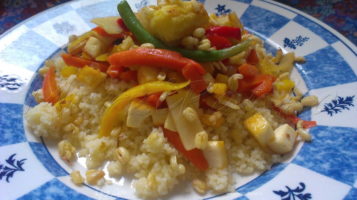 Кус-кус с паниром, овощами wok и ростками маша