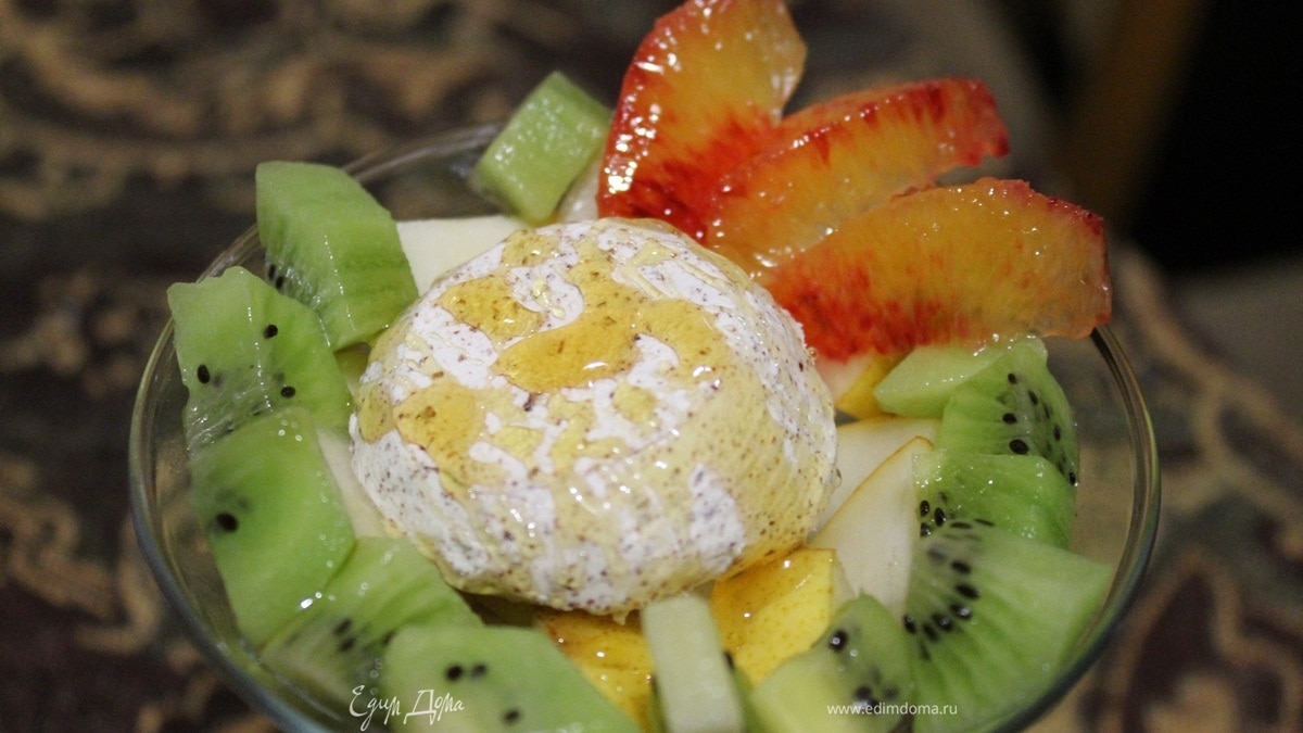 Фруктовый салат с мороженым и медом