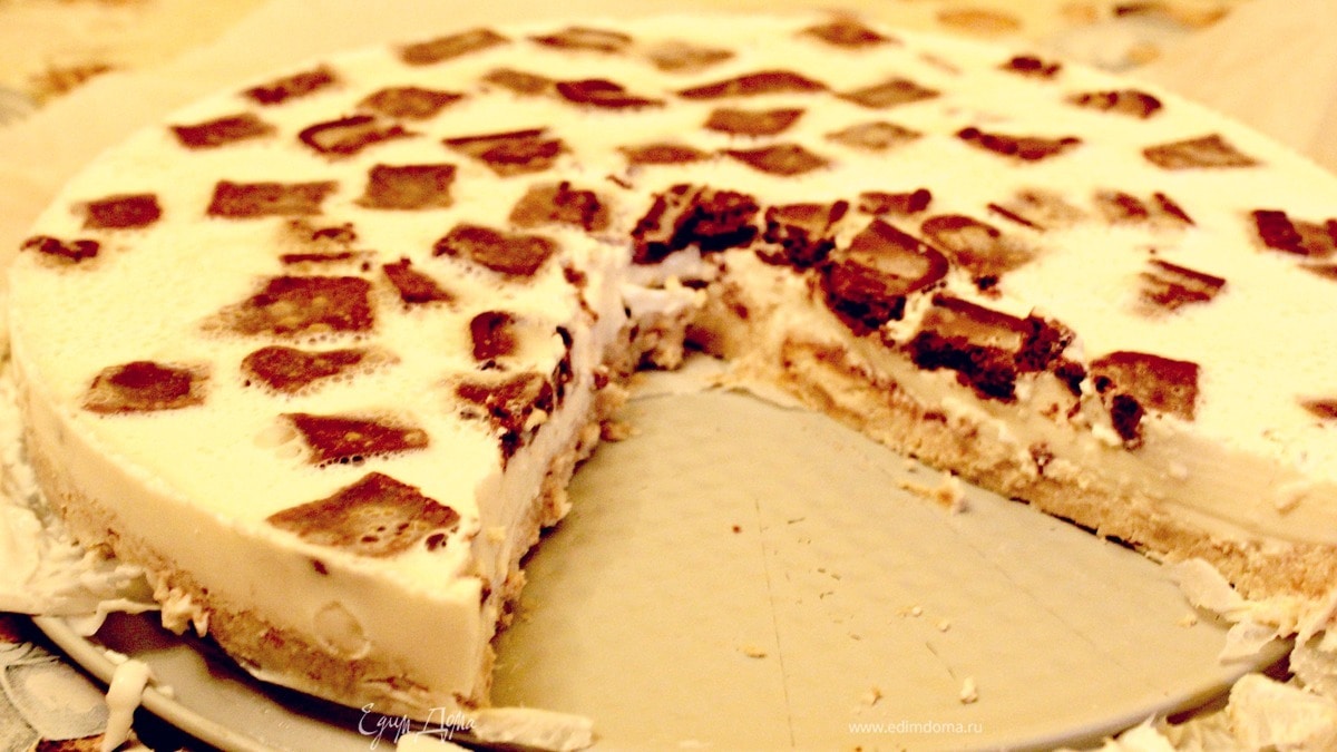 Легкий и воздушный, потому что приготовлен с желатиномС любимым шоколадным печеньем - для сладкоежек