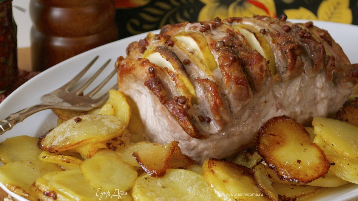 Свинина, запеченная с яблоками