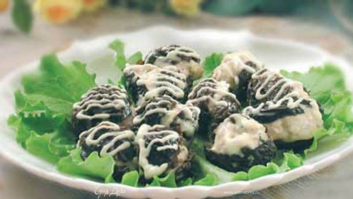 - Шаг 11. Чернослив промывают и заливают на сутки кипяченой холодной водой, чтобы ягоды хорошо набухли. Набухший чернослив надрезают вдоль и удаляют косточки, а мякоть раскладывают на полотенце и дают хорошо подсохнуть. 2. Для фарша орехи и чеснок измельчают ножом или пропускают через мясорубку, добавляют соль и растирают до получения однородной смеси. Во время растирания в массу небольшими порциями вводят лимонный сок или разведенную лимонную кислоту. Как только масса станет белой, растирание прекращают. 3. Чернослив наполняют полученной массой, укладывают на лотки или тарелки и заливают майонезом, смешанным с сахаром. Сверху посыпают рубленой зеленью.