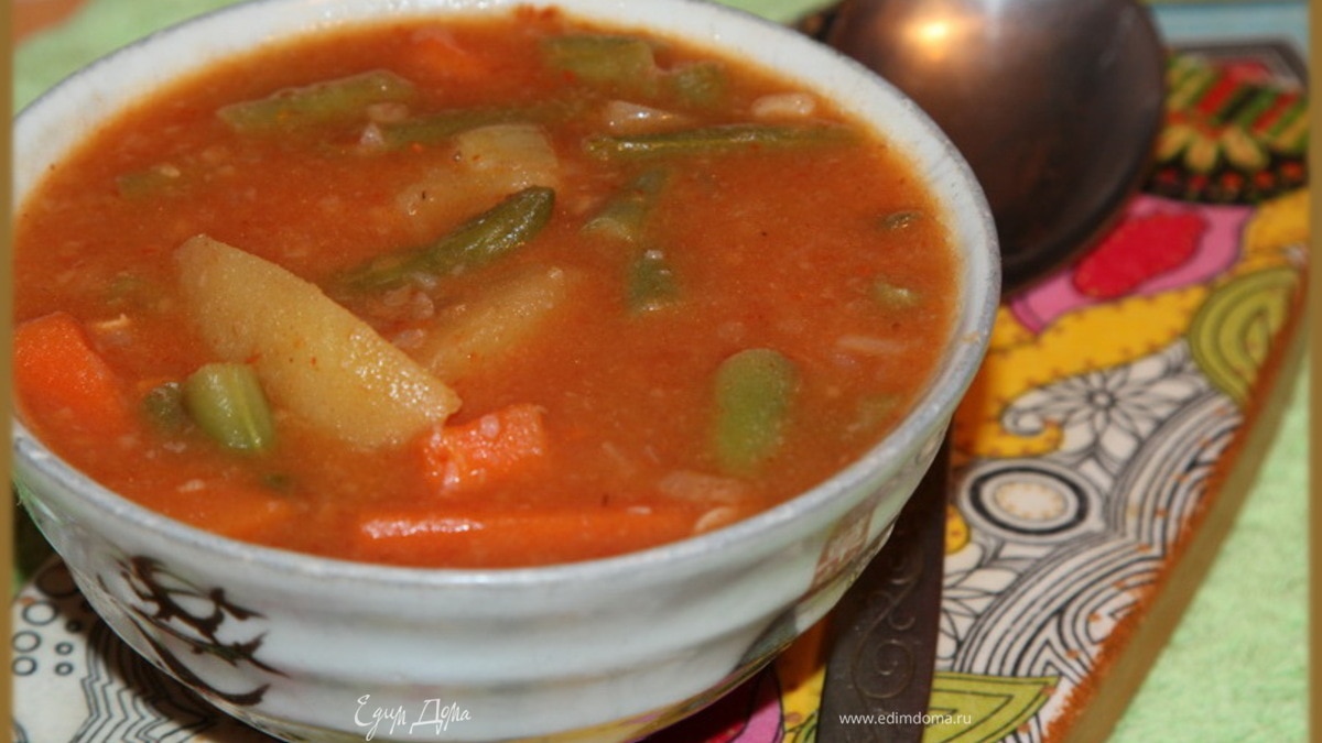 Манджа - это очень популярное блюдо на Балканах, научила меня готовить его подружка, которая проживает в одной из Балканских стран. Вариантов манджи много, но Ирина своевременно "подогнала" мне постный рецептик и с тех пор этот суп прижился у меня и очень выручает, когда нужно не очень калорийное, но сытное блюдо. Ирина тогда мне предложила вариант с картофоелем и маринованной стручковой зеленой фасолью. Готовлю я этот суп все время по предложенному ею рецепту, меняя только фасоль: если есть маринованная - готовлю с ней, если нет - покупаю замороженную и использую пряный томатный сок (в рецепте напишу и покажу). Для приготовления нужно взять кастрюлю с толстым дном или глубокую сковороду тоже с толстым дном. У меня кастрюля с двойным термодном. Суп очень вкусный и сытный, так что настоятельно рекомендую.