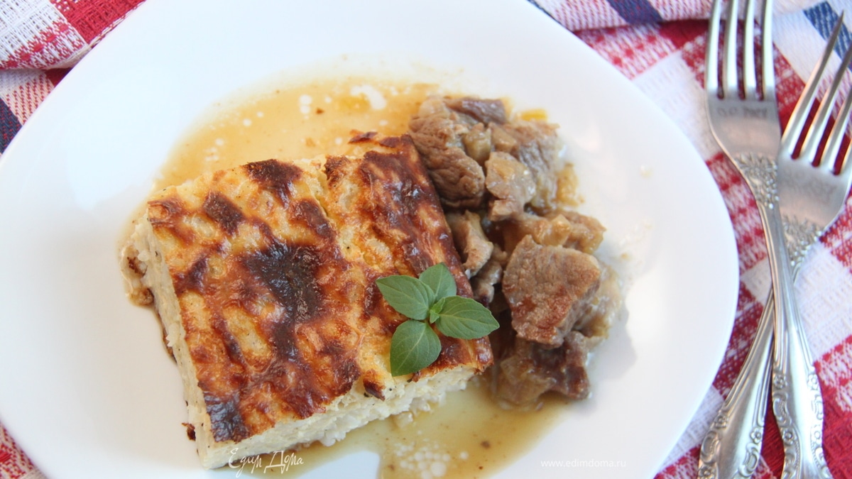 Подавать запеканку тёплой, с мясной поджаркой. Приятного аппетита)))
