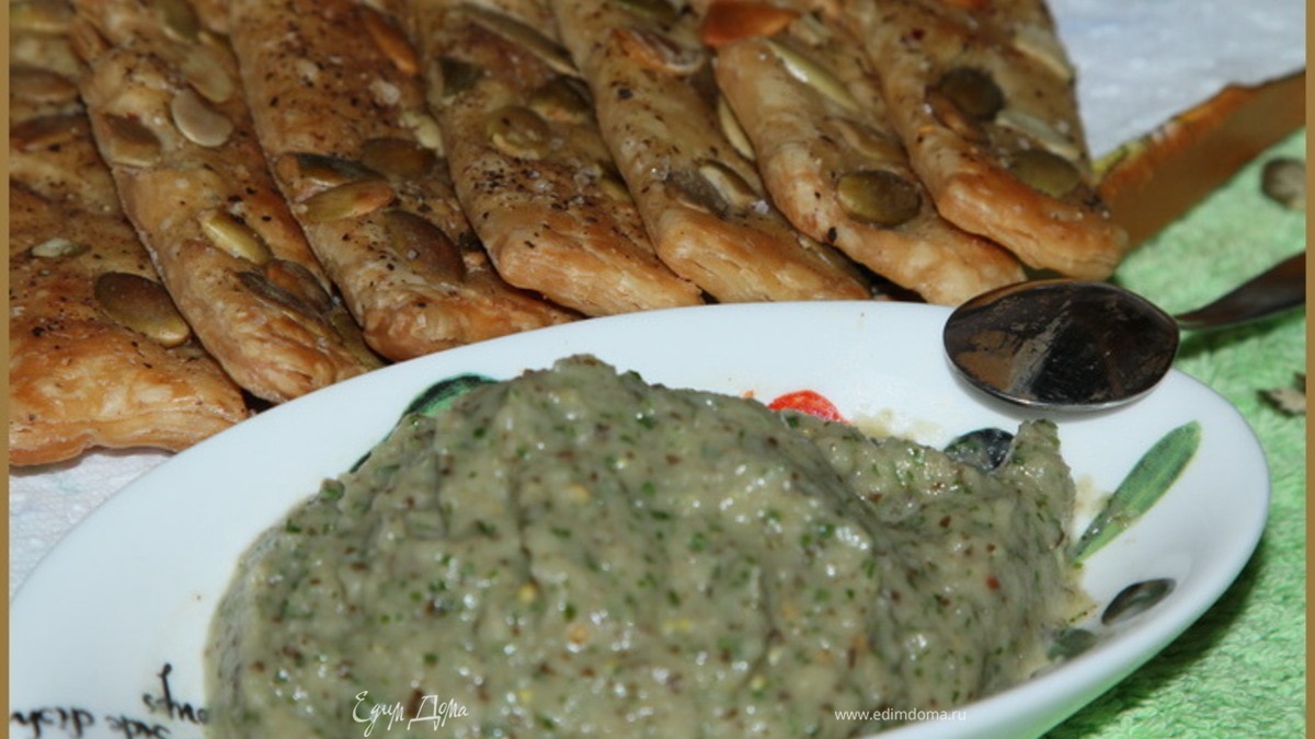 Рецепт этого дрессинга я не так давно открыла для себя. Поделилась им очень многим известная Ника Белоцерковская, за что ей огромная благодарность. Я только немножечко, совсем чуть-чуть внесла коррективы. Не знаю, насколько правильно по сочетаемости продуктов получилось у меня, но мне очень нравится. Причем регулировать можно на свой вкус остроту дрессинга, можно менять зелень...В оригинальном рецепте идет кинза, но у меня кинзу не очень уважают, поэтому я ее заменила на петрушку. Замена неравноценная, я это понимаю, но иду на поводу так сказать...Я от себя добавила зубчик чеснока, молотый черный перец, горчицу зернышками и мед - можно этого не делать. Закладку даю на полную порцию, хотя я готовила половину, т. е. из одного баклажана. Да, чуть не забыла: рецепт предполагает запекание свежего баклажана, а я взяла запеченный замороженный баклажан. К дрессингу я решила приготовить слоеные палочки из готового покупного теста, так что вроде как рецепт - два в одном. Вроде бы все уточнила, если что-то будет непонятно - спрашивайте.