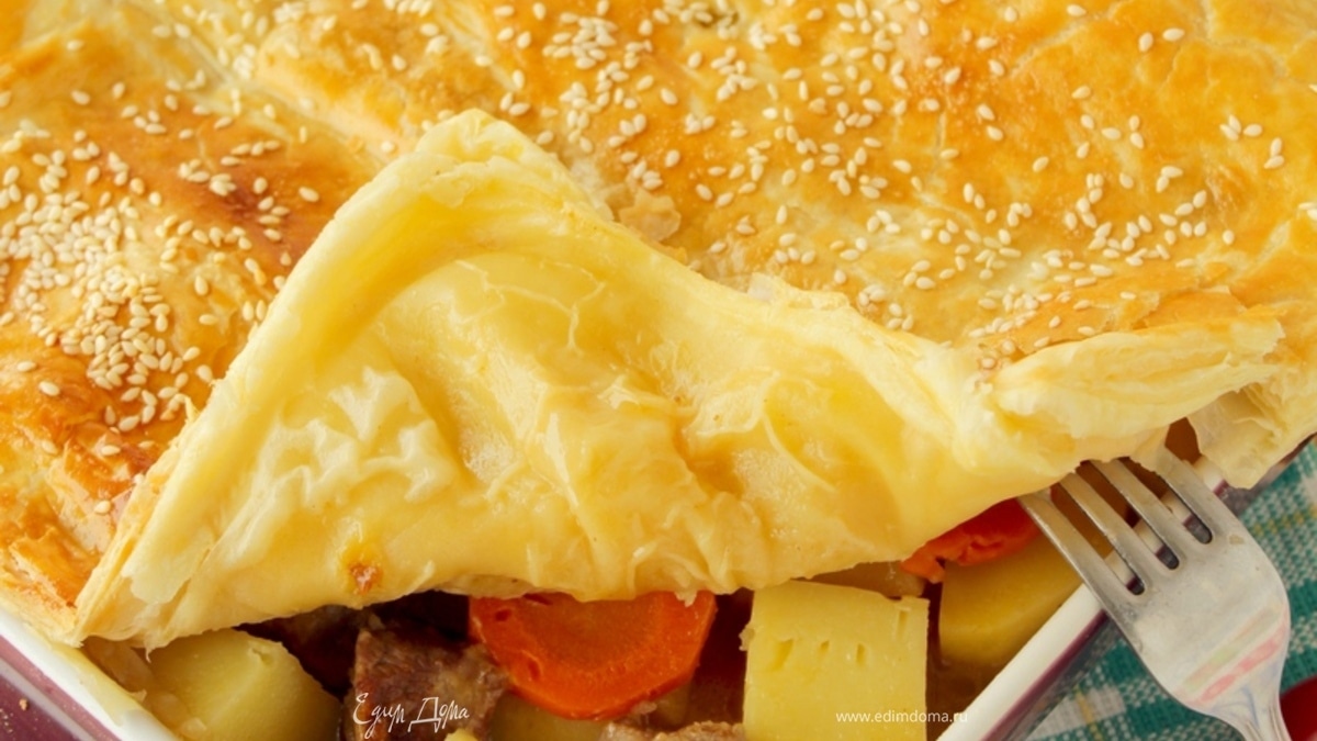 Давно уже не секрет,что мясо в пиве всегда получается нежным и сочным.Соус выходит густым и все овощи и мясо пропитаны этим соусом. Хрустящее и слоеное тесто объединяет и добавляет нужный штрих!
