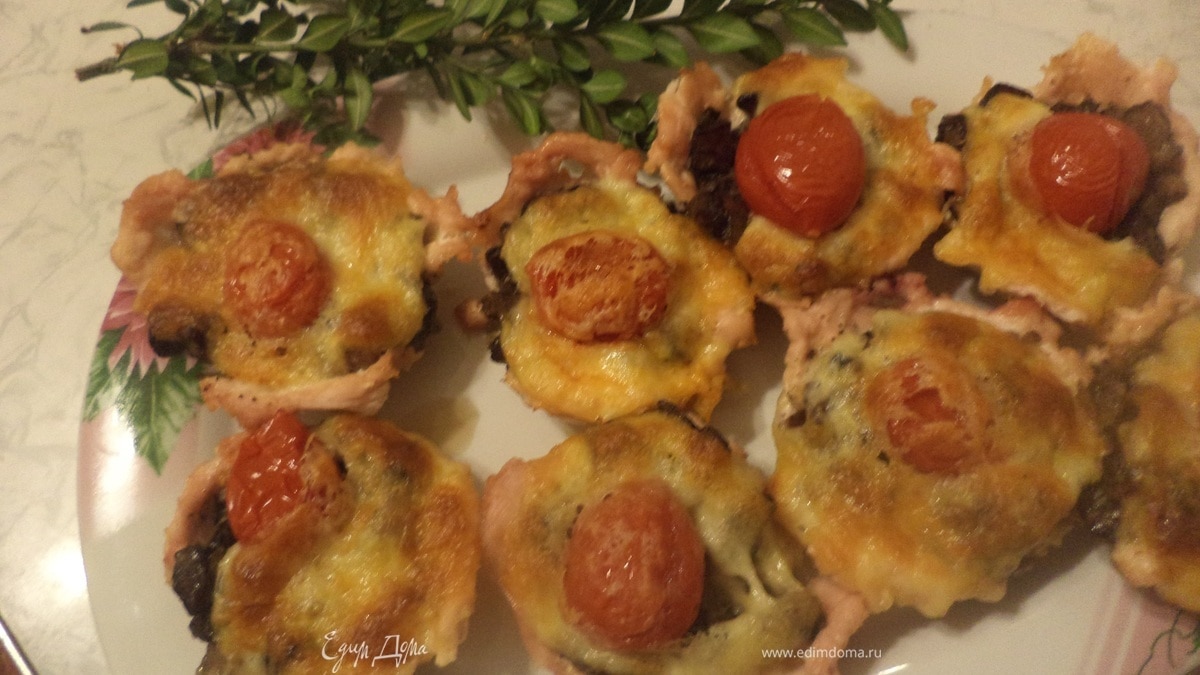 Кексы из куриного филе с шампиньонами и сулугуни