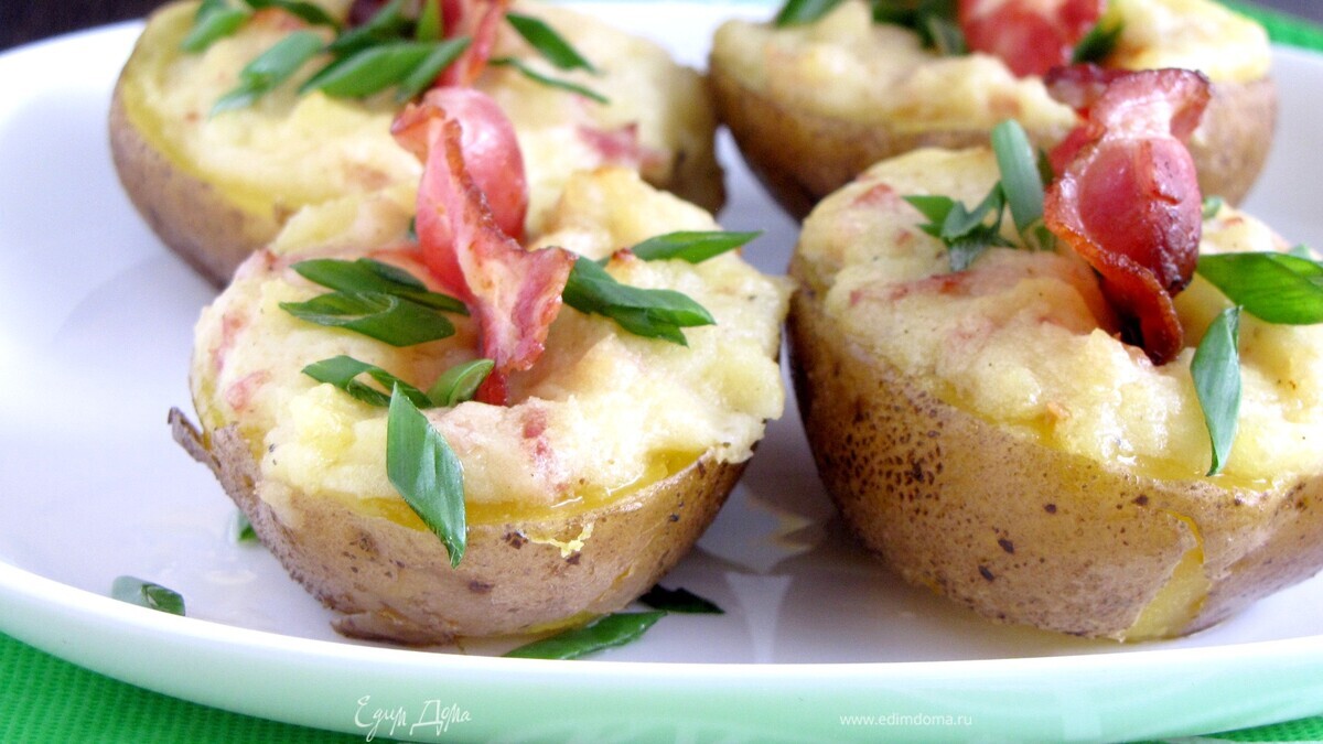Картошечка с беконом - это объедение!!!😋😋😋 И смотрятся лодочки очень нарядно!!💗💗💗💐
