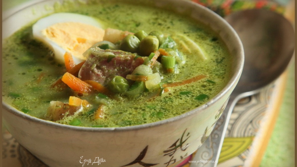 Этот суп тоже моя полная импровизация, но она получилась такая вкусная, что я подумала, что моя идея может еще кому-нибудь пригодится. Суп готовится без бульона, на воде. На каждую порцию супа дополнительно можно использовать домашние колбаски и вареные яйца. Шпината у меня было три хороших пучка, вес я написала приблизительный. Вообще, шпината здесь чем больше, тем лучше. И название такое у супа из-за его насыщенного зеленого цвета.