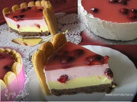 Достаем корж с желе из морозилки, выкладываем получившийся крем и убираем опять в морозилку на 30 минут. - Шаг 6