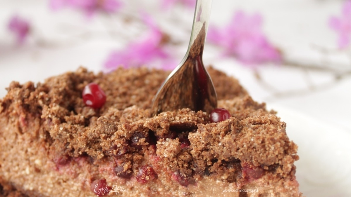 Шоколадно-творожный пирог с брусникой