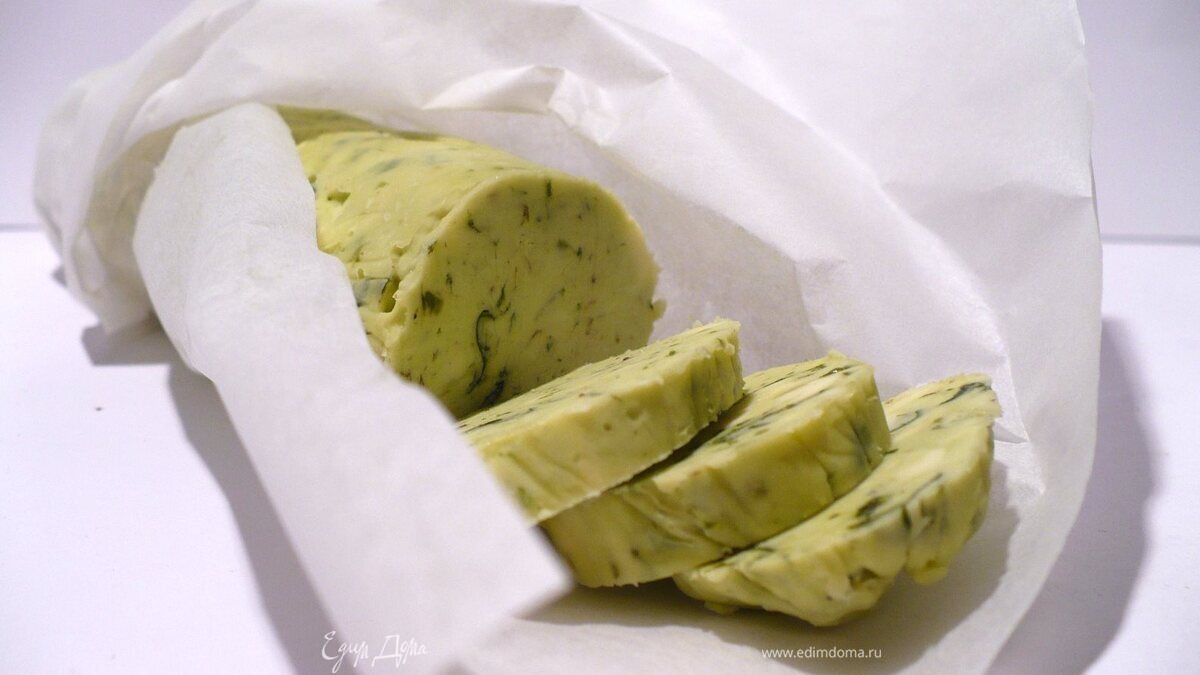 - Шаг 4Выкладываем получившееся масло на пищевую плёнку, заворачиваем и отправляем в холодильник на 3 часа. Если очень торопитесь, то в морозилку на час. Ну, а для тех, кто совсем не спешит - на ночь. Приятного весеннего аппетита!