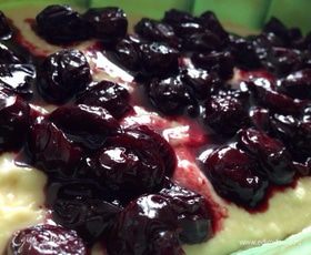 Выложить тесто в форму. Сверху выкладываем вишню и выпекаем 40-45 минут при температуре 180 градусов.