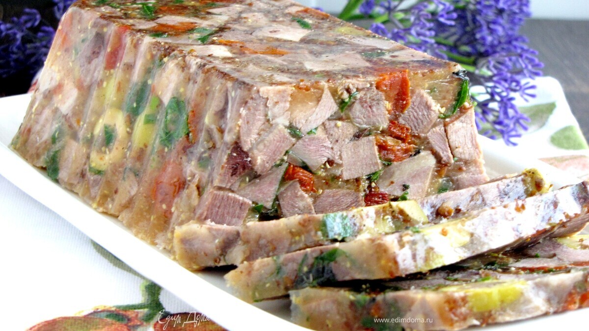 Франция у меня всегда ассоциируется с праздником, а французская кухня — с изысканными и необычными блюдами. Сегодня у меня как раз такой рецепт — террин из языка с добавлением оливок, вяленых томатов и зелени.